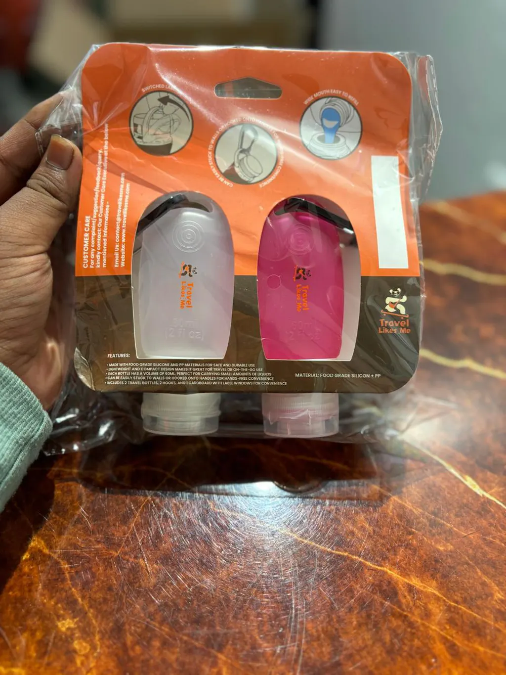The TravelLikes_Me Squeezers come with built-in hooks that allow you to hang them from handles or other fixtures. This design helps you keep them accessible and organized, whether you’re in a hotel room or on the go.